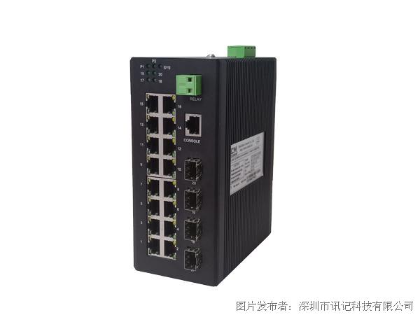 20口全千兆网管型工业交换机采用高强度IP40防护外壳,工业级EMC设计。
