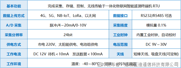 内嵌4G、5G、NB-IoT、LoRa模块,实现采集、控制、无线传输于一体;